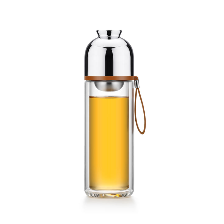 Infusez votre thé où que vous soyez grâce à la Gourde à thé Nomad Transparent au design ingénieux et minimaliste. Fabriquée en verre borosilicate double paroi, elle isole efficacement la chaleur tout en restant agréable au toucher.